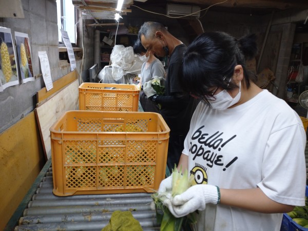 当施設で育てたとうもろこしの出荷作業を行いました!